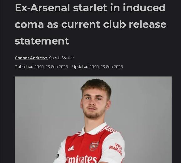 9月23日讯 英媒talksport报道,前阿森纳青训球员比利-维加遭遇严重脑部损伤,已处于诱导性昏迷状态。
