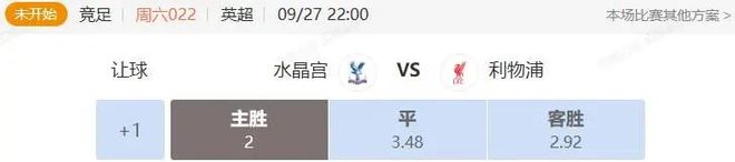 目前市场给到利物浦0.5的支持,对比过往数据力度走弱,利物浦目前一家独大,榜首交替才符合英超的调性,大胆搏水晶宫主场不败。