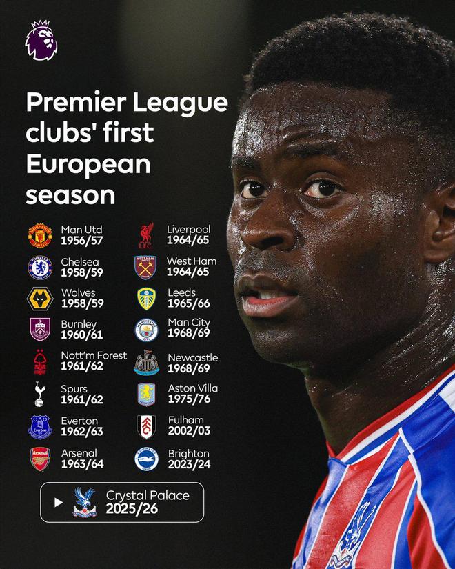 据英超官方统计,水晶宫将会成为目前英超联赛中第17支参加欧战正赛的球队。