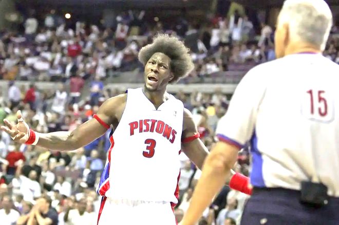 第四位:本・华莱士——“沉默的凶兽”,一言不发就动手,奥本山宫事件的“导火索”本・华莱士平时沉默寡言,看起来像个“老实人”——他从不用垃圾话挑衅对手,也不喜欢在镜头前表现自己,只会用篮板和盖帽证明自己。可谁要是以为他“好欺负”,那就大错特错了——一旦被激怒,他就会变成“沉默的凶兽”,用拳头解决问题,连阿泰斯特都敢怼。2004年奥本山宫事件,正是由本・华莱士的“一推”引发。当时比赛临近结束,阿泰斯特对本・华莱士犯规动作过大,本・华莱士瞬间暴怒,一把将阿泰斯特推到数米开外。要知道,本・华莱士身高2.06米,体重118公斤,爆发力极强,这一推差点让阿泰斯特摔倒。也正是这一推,点燃了后续的“观众席混战”——阿泰斯特被激怒后冲进观众席,引发大规模冲突。除了奥本山宫事件,本・华莱士在赛场上也多次“失控”:他曾因对手故意犯规,直接冲上去与对手推搡;也曾因裁判判罚不公,怒摔毛巾、踢翻饮水机。可他的“暴脾气”从不针对队友,反而很护短——当年活塞队友被对手欺负时,本・华莱士总会第一个站出来“撑腰”。活塞队友回忆:“华莱士平时话不多,但只要你是他队友,他就会保护你;要是你是他对手,就别轻易惹他。”
