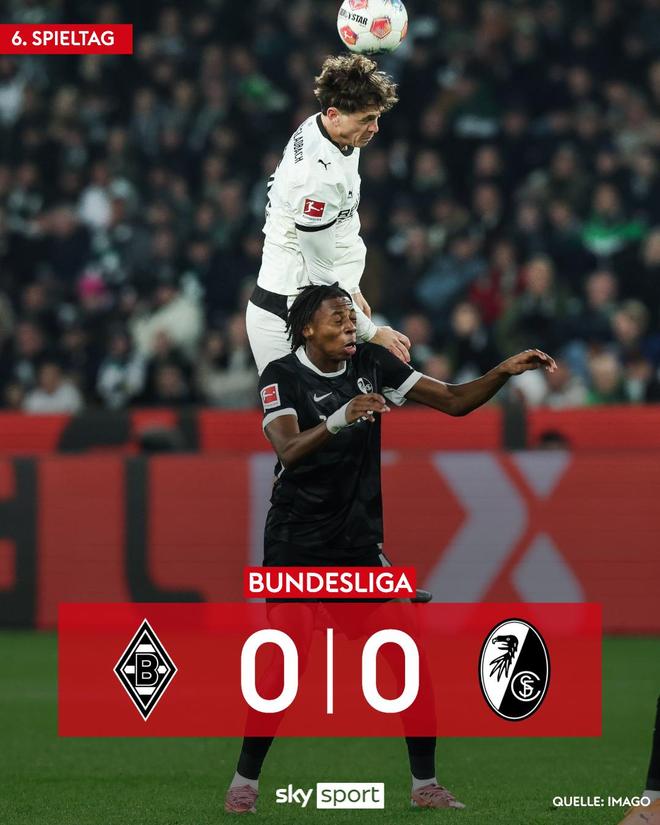 雷速体育10月6日讯 本周末,德甲第6轮全面打响。本轮最后一场比赛中,门兴格拉德巴赫主场0-0战平弗赖堡。