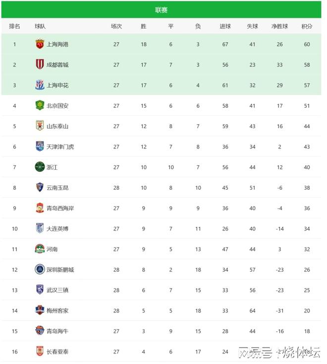 本轮深圳新鹏城客场战胜武汉三镇,总积分提升到26分,排名超越武汉三镇升至12位。深圳新鹏城领先降级区8分,对青岛海牛、长春亚泰相互战绩都占优。