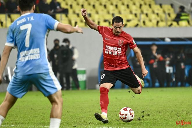 虽然上半场成都蓉城顶住了河南队的反扑,但下半场开始仅30秒,河南队就在一次反击中凭借钟义浩的小角度抽射将比分扳平。第48分钟,费利佩在禁区弧顶的凌空抽射被王国明奋力扑出,甘超拿球到右路下底时传中打在了防守的阿奇姆彭手臂上,但艾堃没有判罚点球,VAR介入后也没有改变判罚。之后,蓉城主力左翼卫古尔芬克尔被撞伤头部换下,德尔加多替补登场。